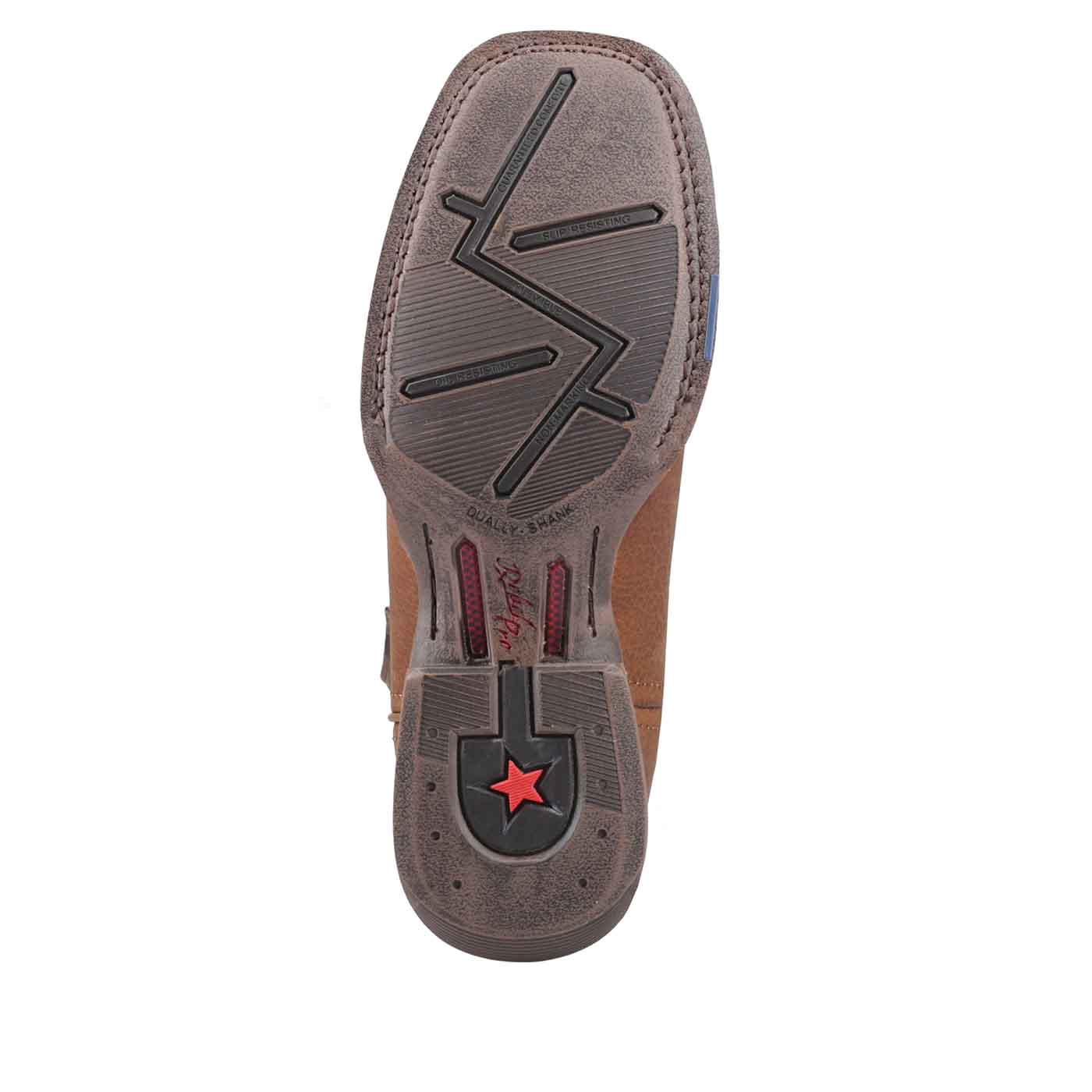 Für zusätzliche Stabilität sorgt die doppellagige Innensohle mit einer flexiblen, durchgehenden Unterseite und einer stabilisierenden, starren Ferseneinlage. Das patentierte Dually Shank System™ bietet mit zwei Gelenkstücken aus Glasfaser mediale und laterale Torsionsstabilität sowie Unterstützung im Mittelfußbereich. Die Littleway-Naht verbindet Außensohle, Absatz und Obermaterial und sorgt so für Haltbarkeit. Eine leicht ABS-Absatzbasis und eine ölbeständige, rutsch- und abriebfeste Gummisohle bieten hervorragende Bodenhaftung und Komfort, so dass diese Stiefel sowohl zum Reiten, für die Arbeit als auch für den Alltag ideal geeignet sind.
